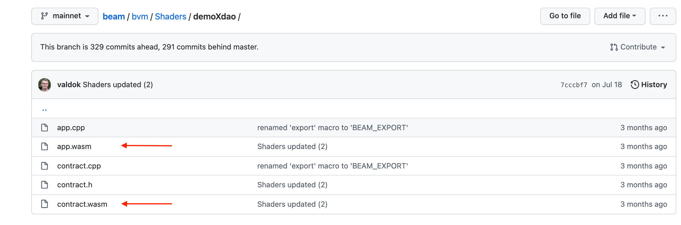 The reason for that is that each application comes in two parts. The first is the contract deployed to the blockchain (contract.wasm) and the second allows the wallet to interact with the contract (app.wasm). We suggest creating a shaders folder inside the beam folder with the subfolder with specific apps like faucet.