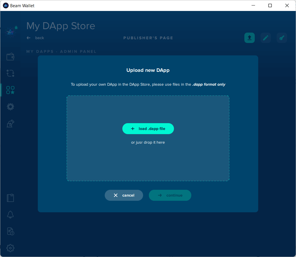 4. Upload your .dapp file from your desktop (note: all files must be in .dapp format).