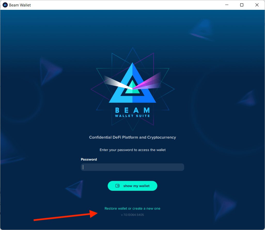 Create a password (ten characters minimum, at least one letter, number, or special symbol) that will give you access to your Beam wallet. Your wallet password is an extra lock for your device, while your seed phrase is a private key that identifies your wallet and can access your funds.