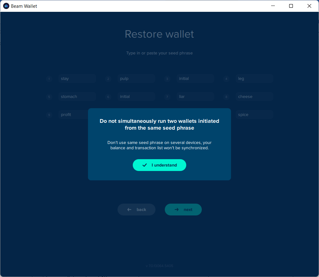 Life is complicated: hard drives crash, devices get stolen, but if you have taken the proper steps of securing your seed phrase when first creating your Beam wallet, then you can breathe a little easier knowing your funds are safe and secure.
