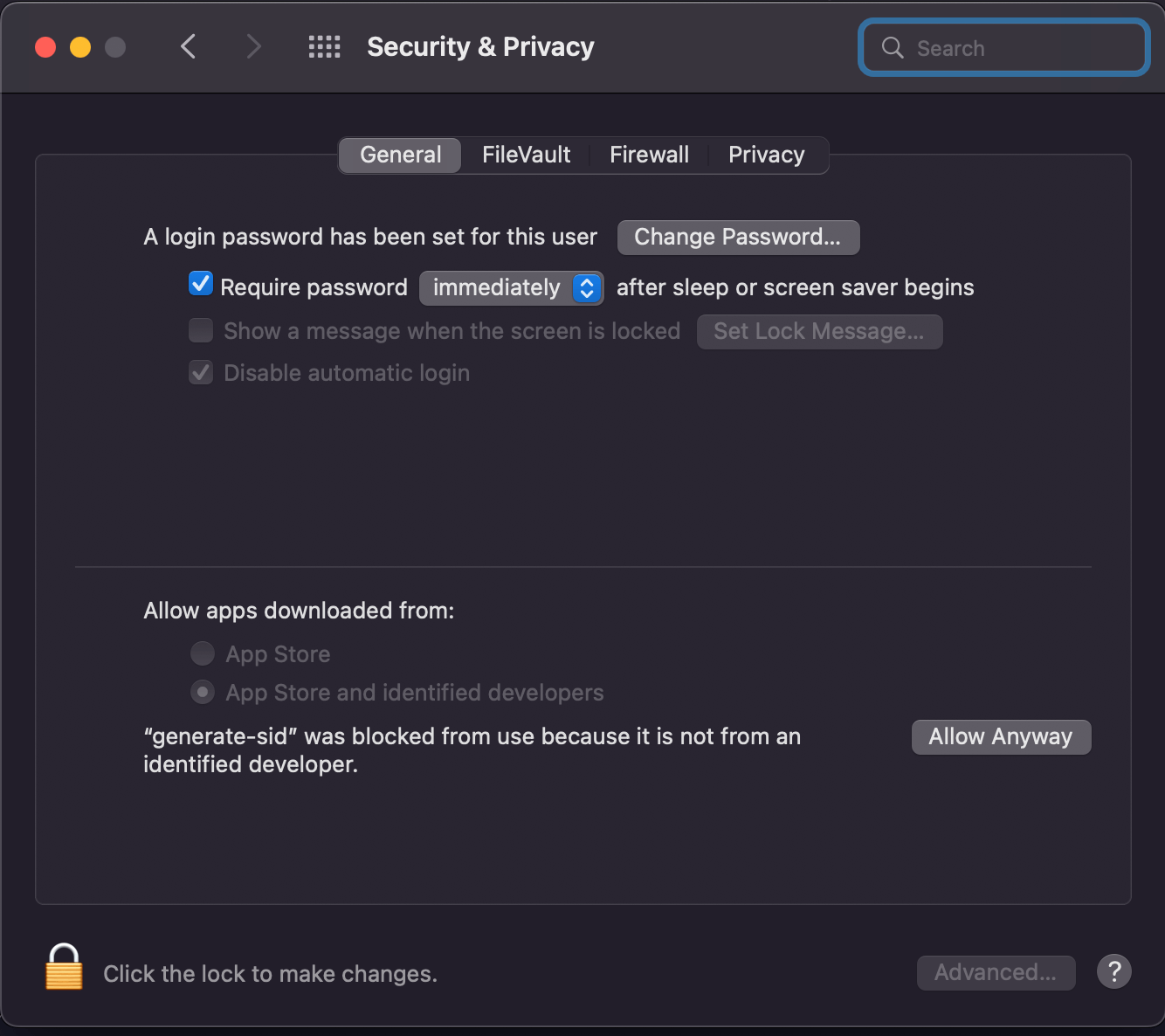 Here comes another issue. Your Mac is very likely to warn you about the fact that generate-sid application was not created by a certified developer