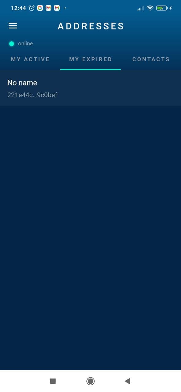 - My Expired Addresses: expired wallet addresses from previous transactions.