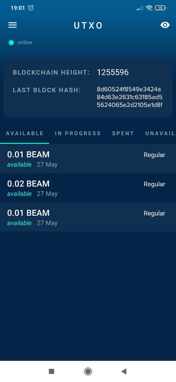 UTXO represents the amount of cryptocurrency remaining after each transaction. The "output" for each UXTO creates a new "input" for new transactions. - Your Beam wallet automatically selects the UTXO for each transaction.
